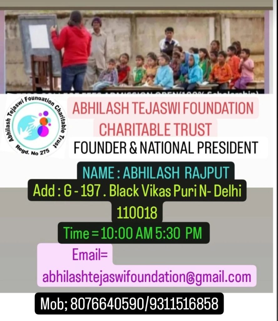 Abhilash Tejaswi Foundation is giving free education to poor children.Working with this thinking...
